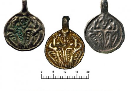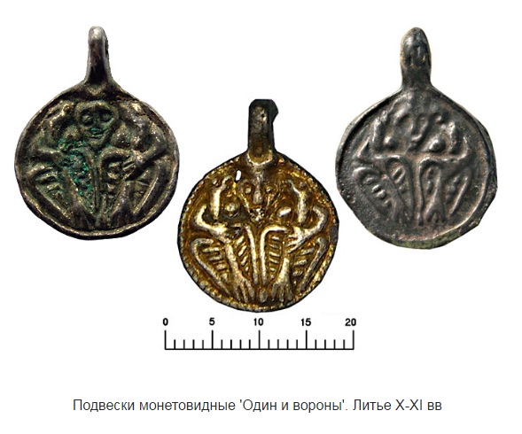Также в Суздале найдены каменные литейные формы, в которых отливали обереги. На одной из них изображена фигура сидящего человека с двумя птицами на плечах – это скандинавский бог Один.